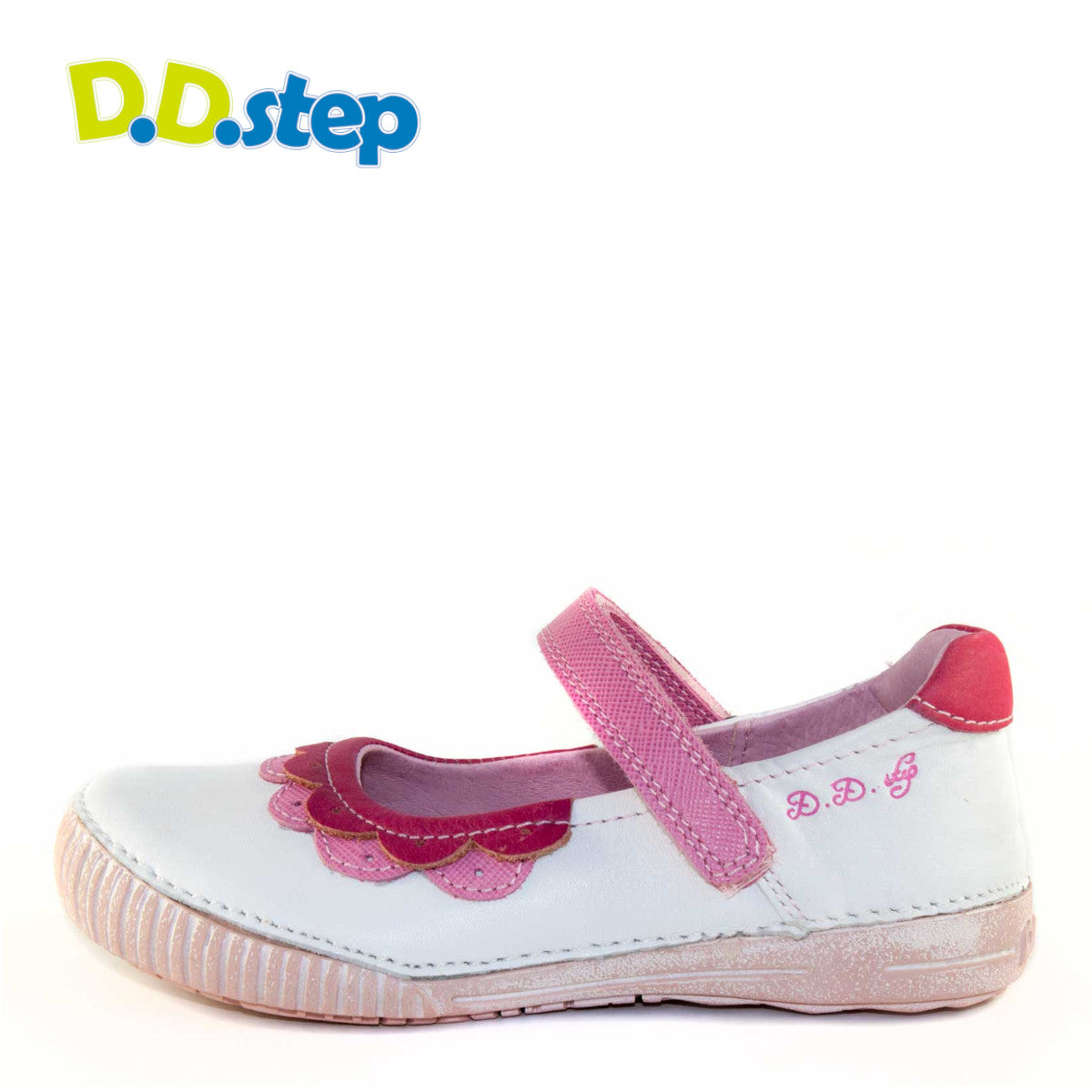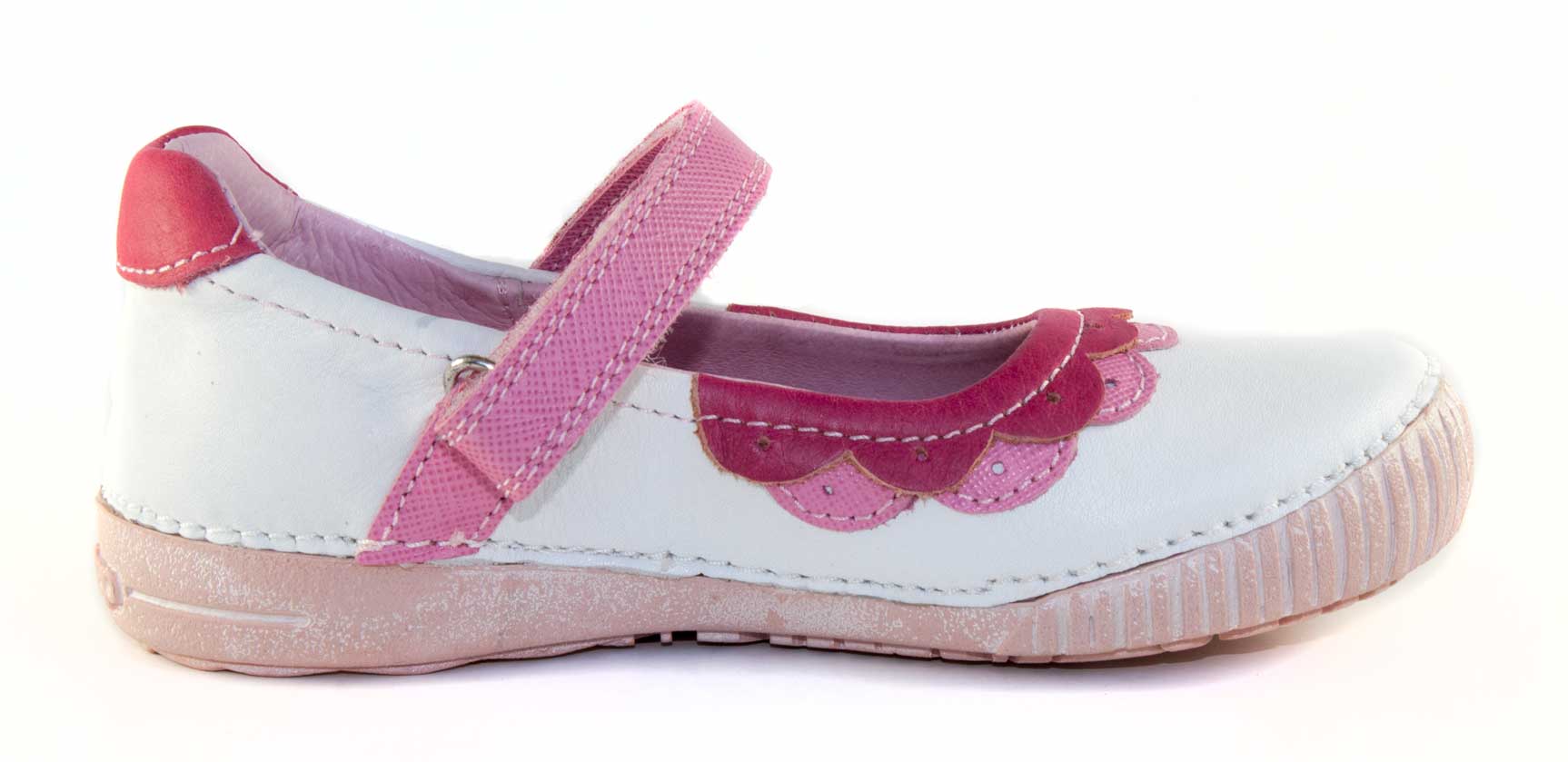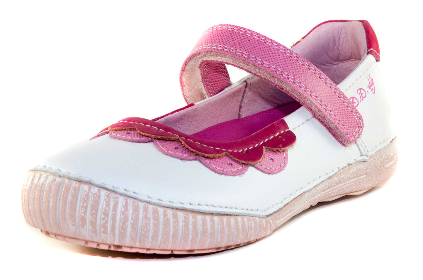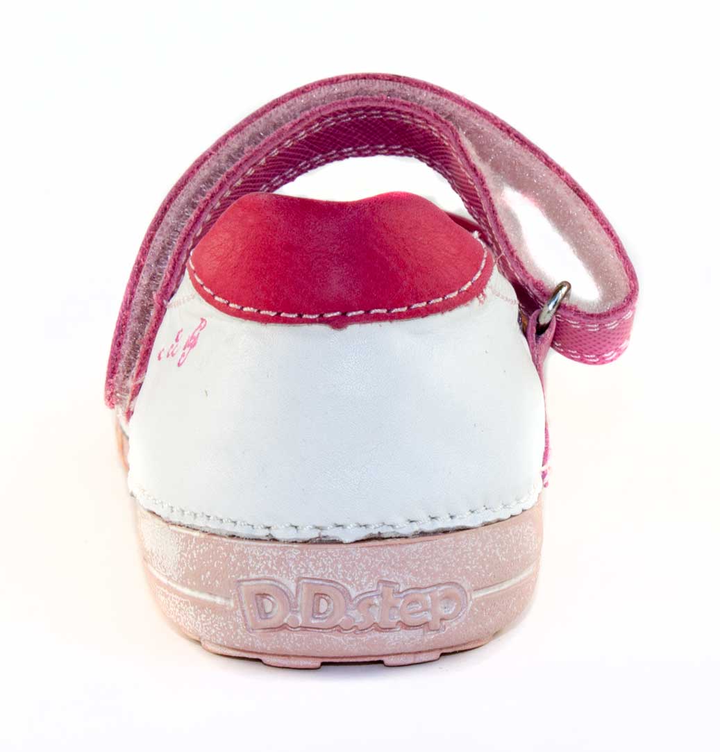 D.D. Step little kid single strap girl sandals/dress shoes white with pink decor size US 8.5-12