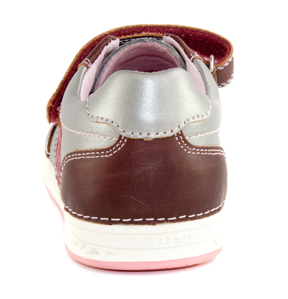 D.D. Step big kid girl double strap shoes metal and light pink with maroon size US 13-4