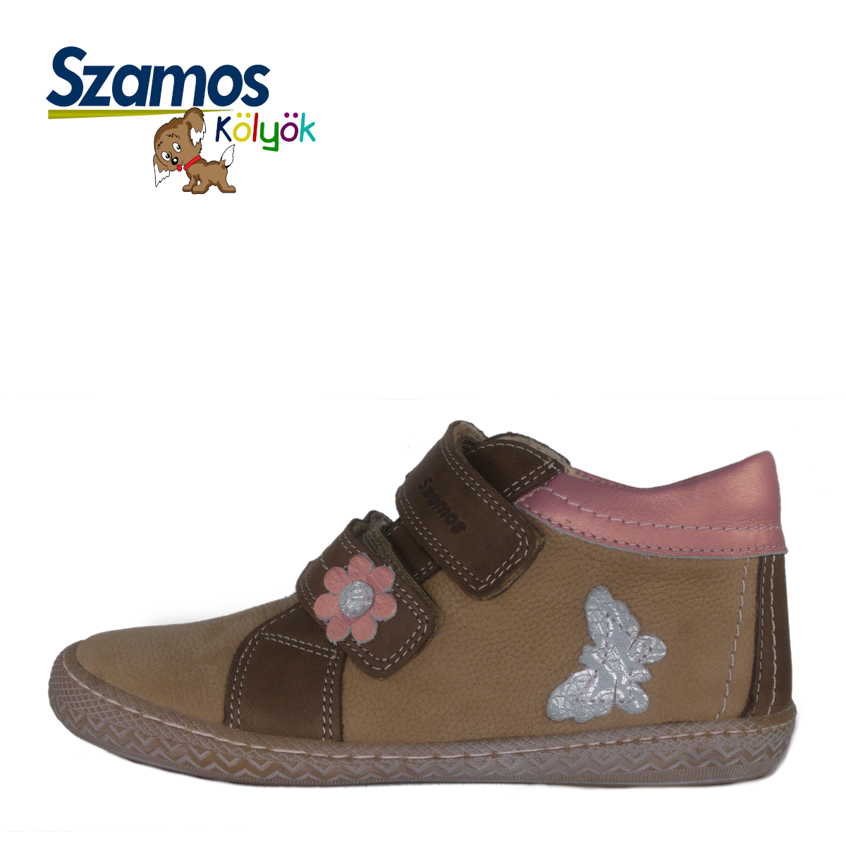 Szamos kid girl sneakers beige with grey butterfly decor little kid/big kid size