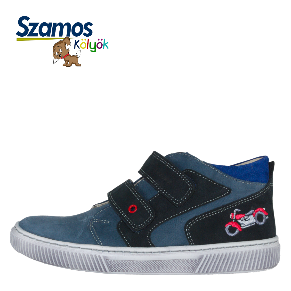 Szamos kid boy sneakers blue with motorbike decor little kid/big kid size