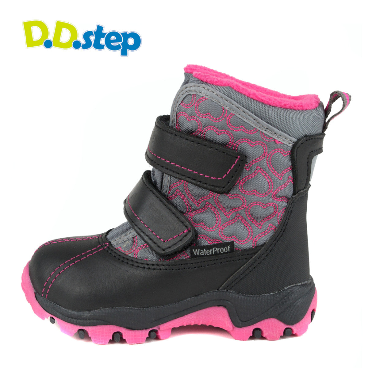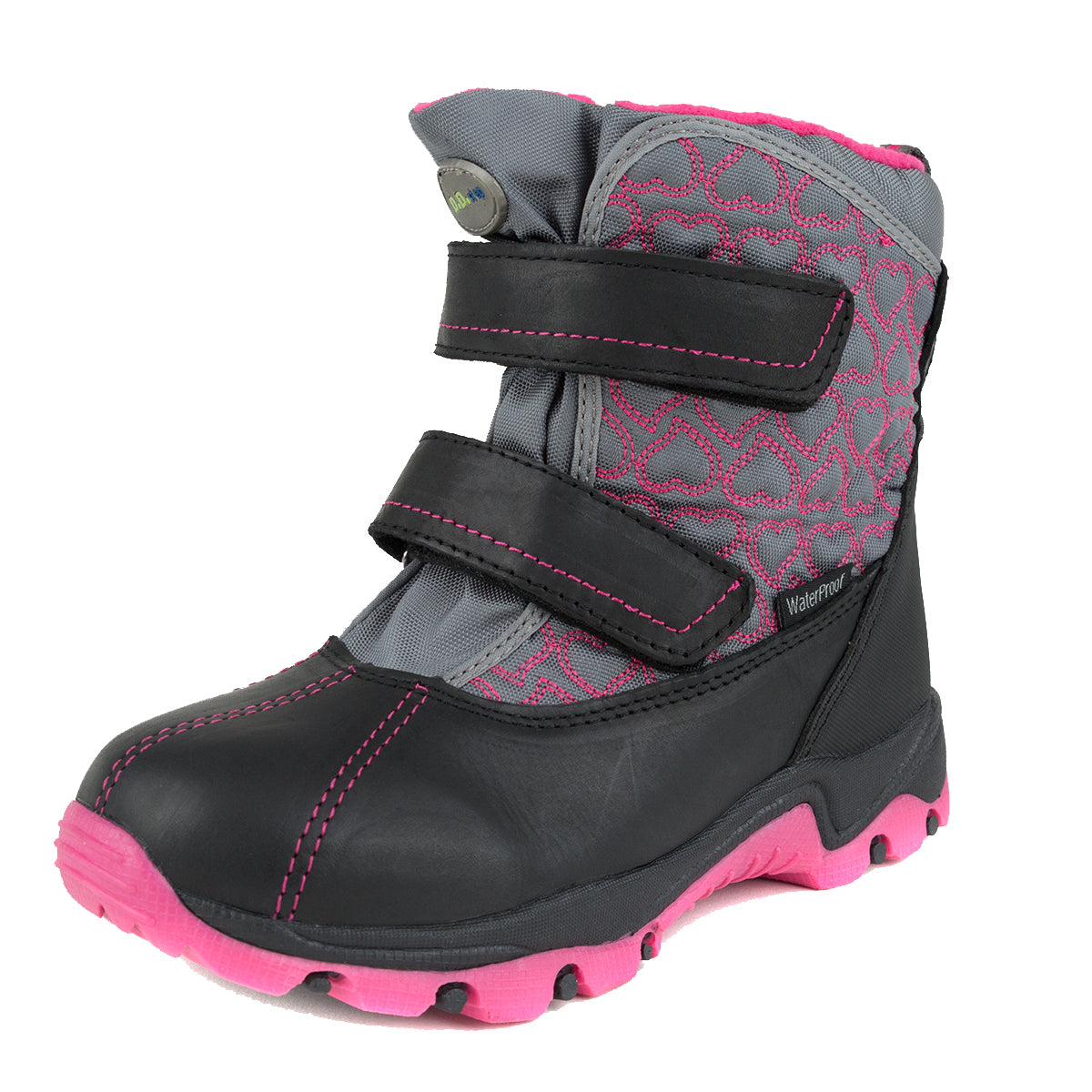 DD Step bottes d'hiver pour petites/grandes filles avec isolation en polaire motif coeur fuchsia taille US 8-3.5