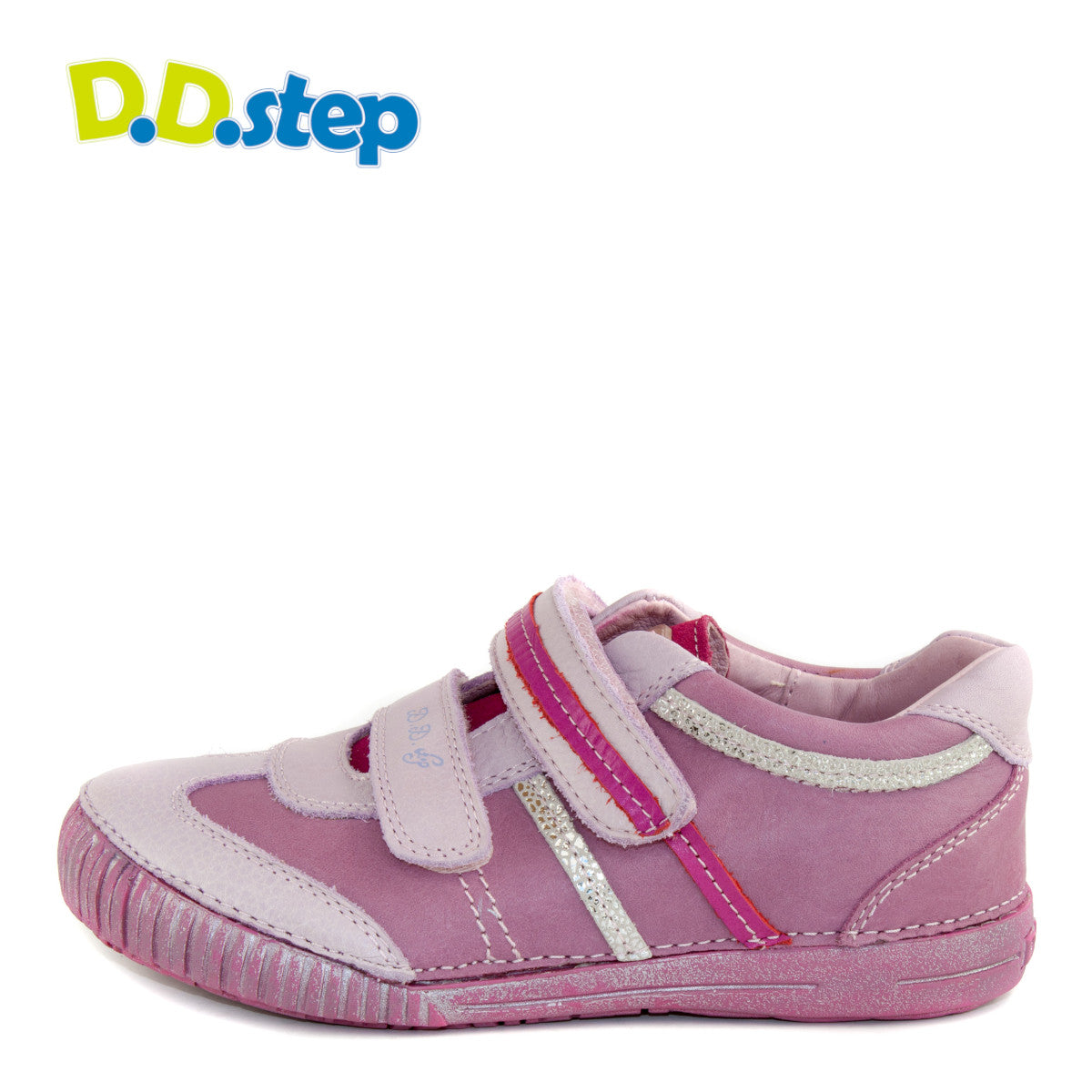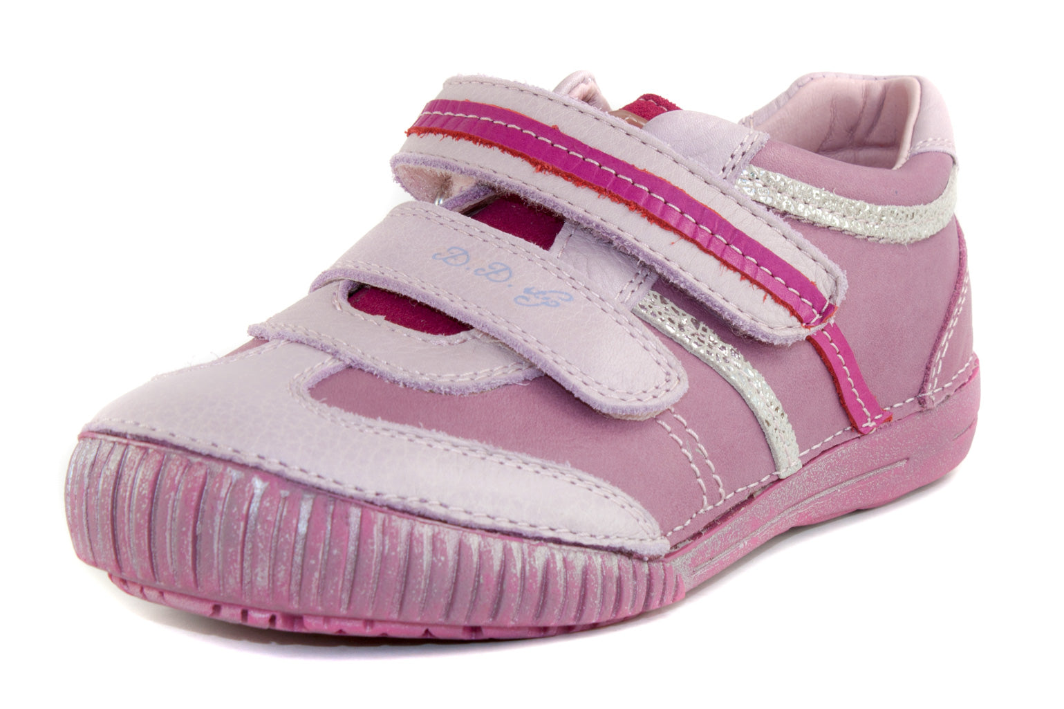 DD Step big kid girl double strap shoes rose foncé avec des rayures argentées et roses taille US 13-4
