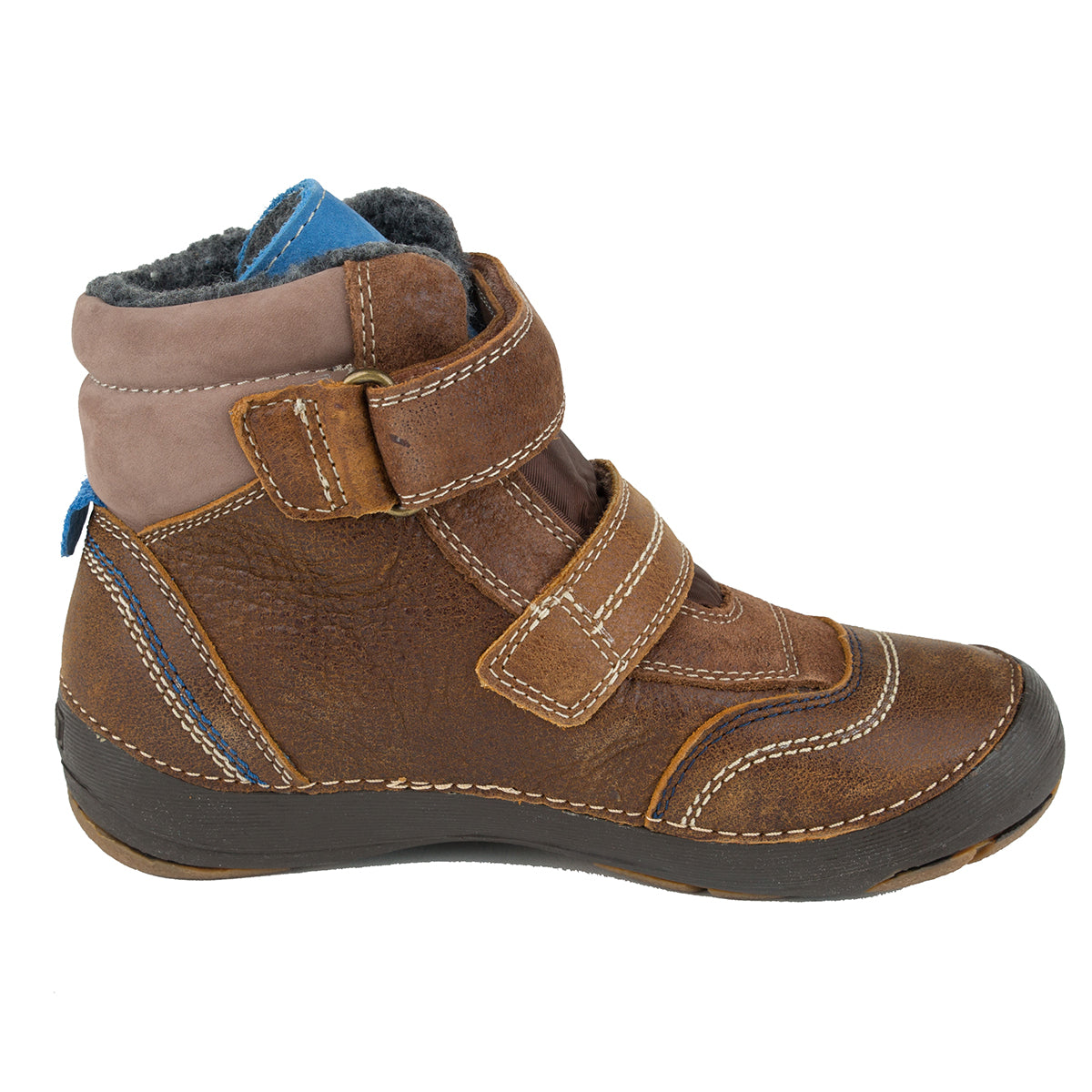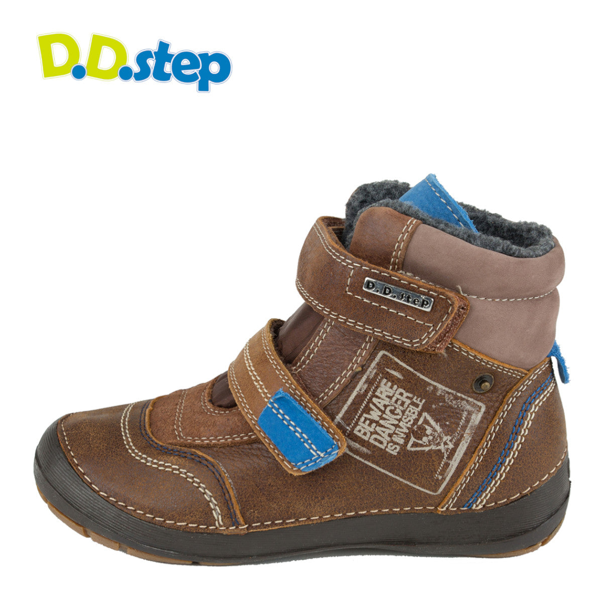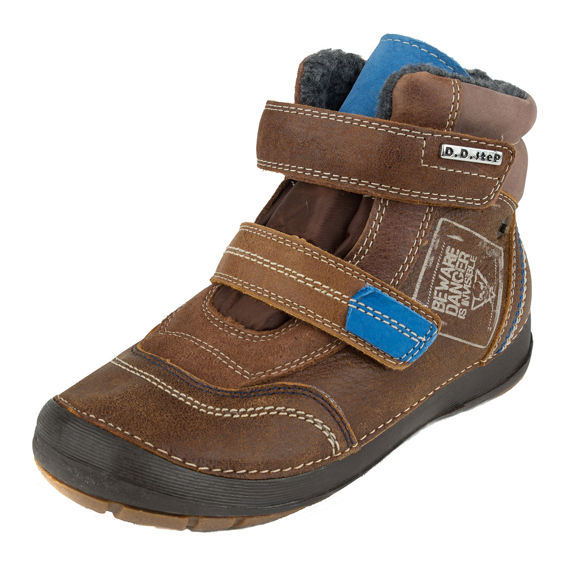 D.D. Step big kid shoes/winter boots with faux fur insulation brown and blue size US 13-4