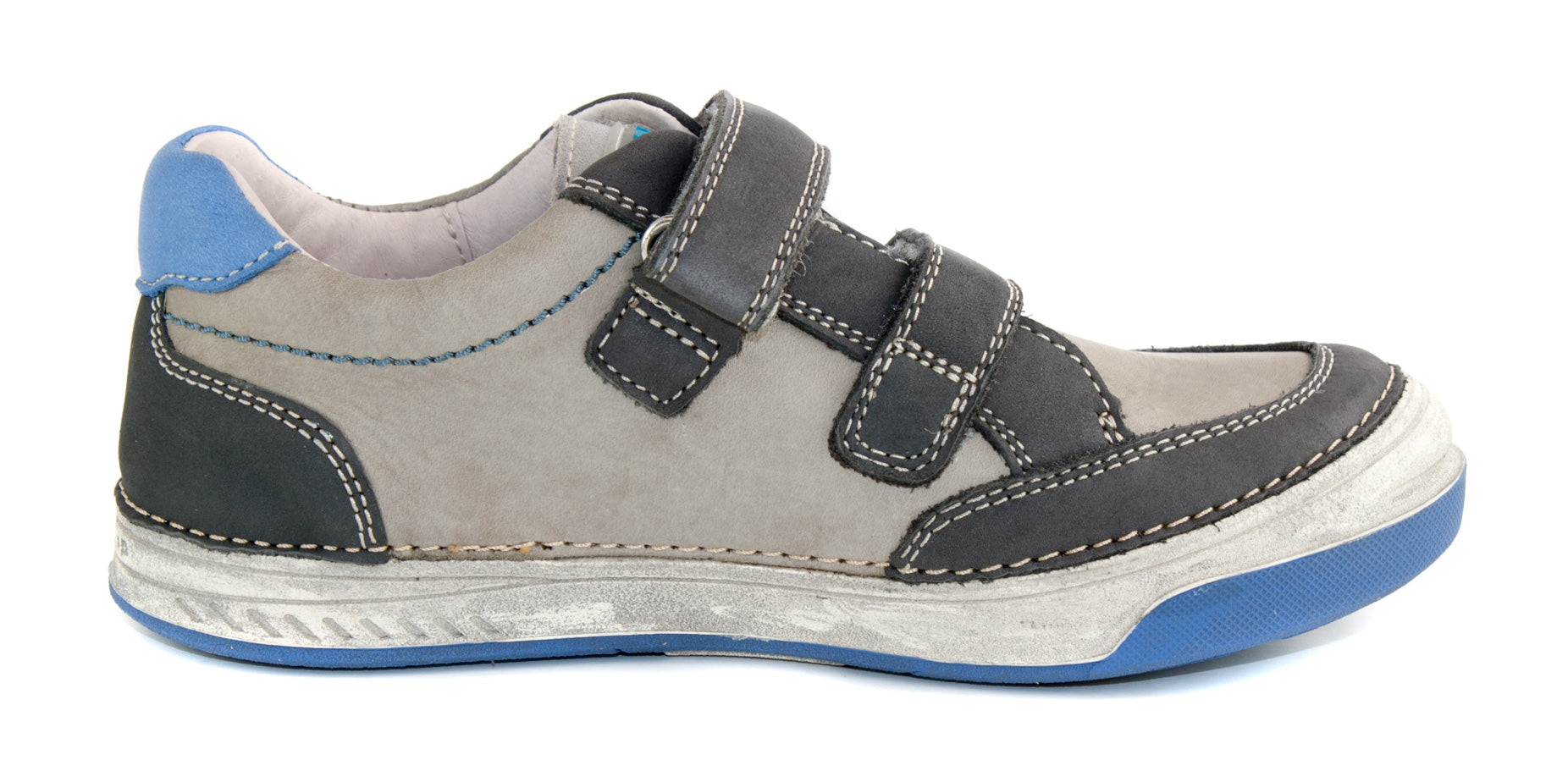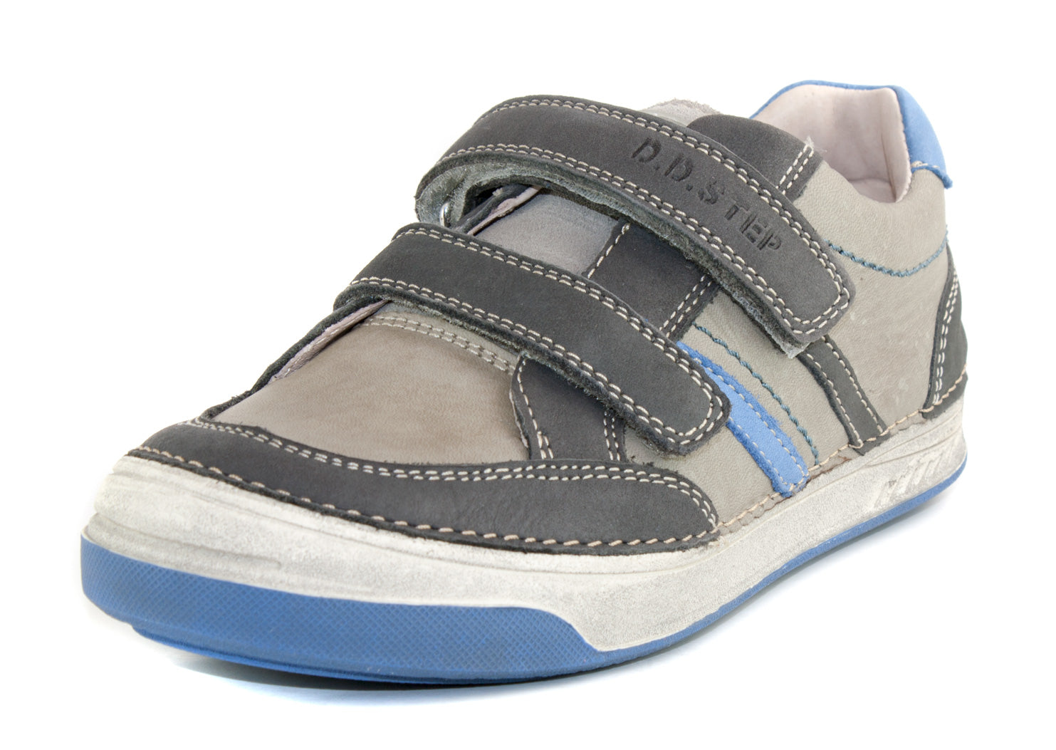 D.D. Step little kid boy shoes grey with blue and black stripes size US 13-4